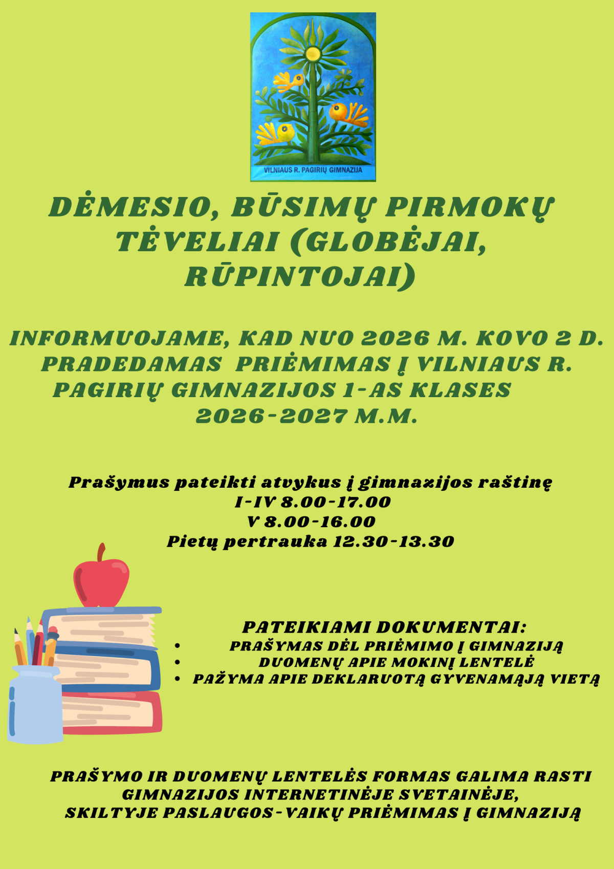 Priėmimas į 2026-2027 m.m pirmas klases