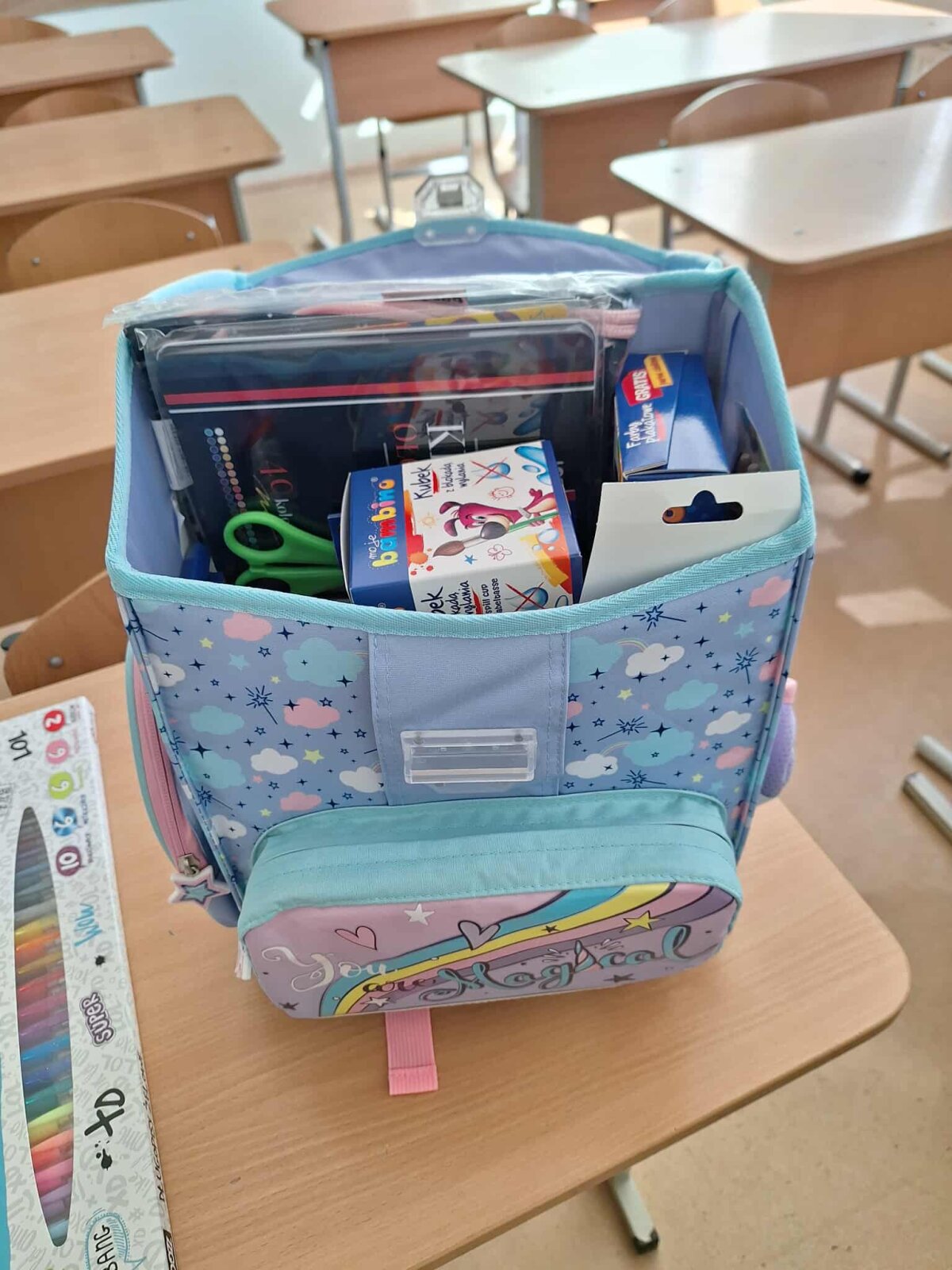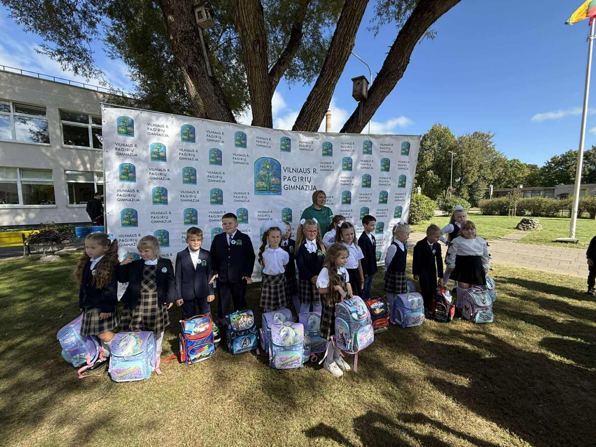 W ramach programu pn. „Bon Kolbego dla pierwszaków i przedszkolaków na Litwie 2025” uczniowie klasy 1f otrzymali na rozpoczęcie roku szkolnego wyprawki szkolne, piękne, kolorowe plecaki. W plecaku były kredki, gwasze, blok rysunkowy, blok papieru kolorowego, zeszyty, piórnik z pełnym wyposażeniem: pióro, linijka, nożyce, temperówka. Były również worki na dresy oraz fartuszek do lekcji plastyki. Także każdy uczeń również otrzymał zestaw obiadowy.