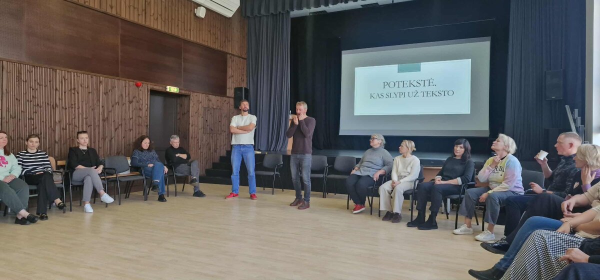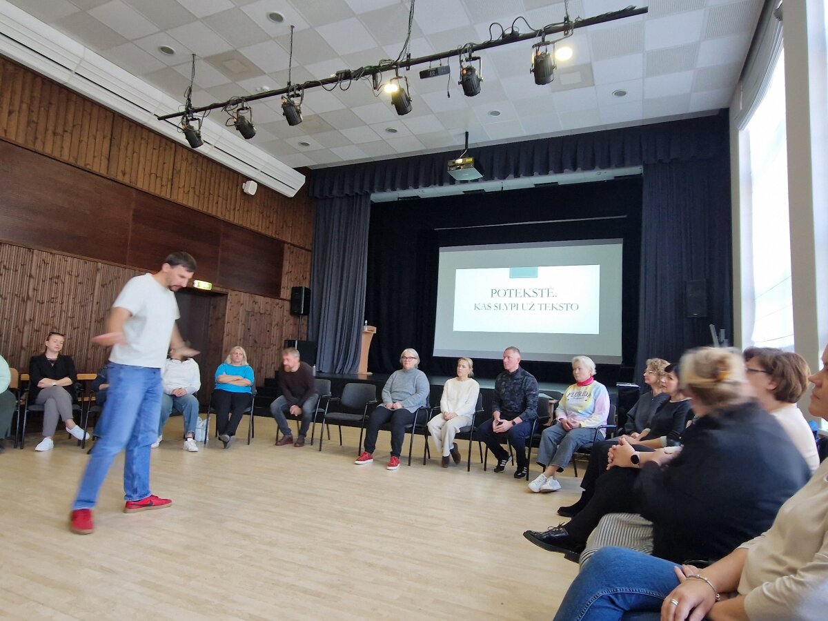 Dalyviai išbandė scenos kalbos, vaizduotės ir artikuliacijos pratimus, mokėsi įsiklausymo į kūną bei improvizacijos. Kūrybinėse laboratorijose mokytojai rengė individualius ugdomosios veiklos planus, kuriuos galės taikyti savo pamokose. Praktinių veiklų metu jie sukūrė kūrybines idėjas, pritaikomas kultūros ugdymo kontekstuose.