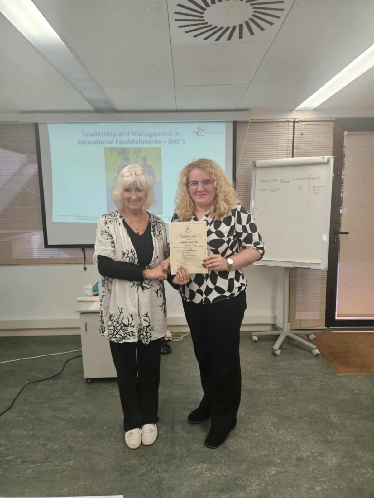 Paskutinę dieną daug dėmesio skirta saugios, pozityvios ir mokymuisi palankios aplinkos kūrimui, rizikų valdymui, išteklių planavimui bei veiksmų plano sudarymui ateičiai. Kursai užbaigti refleksijomis ir bendru įgytų patirčių apibendrinimu.