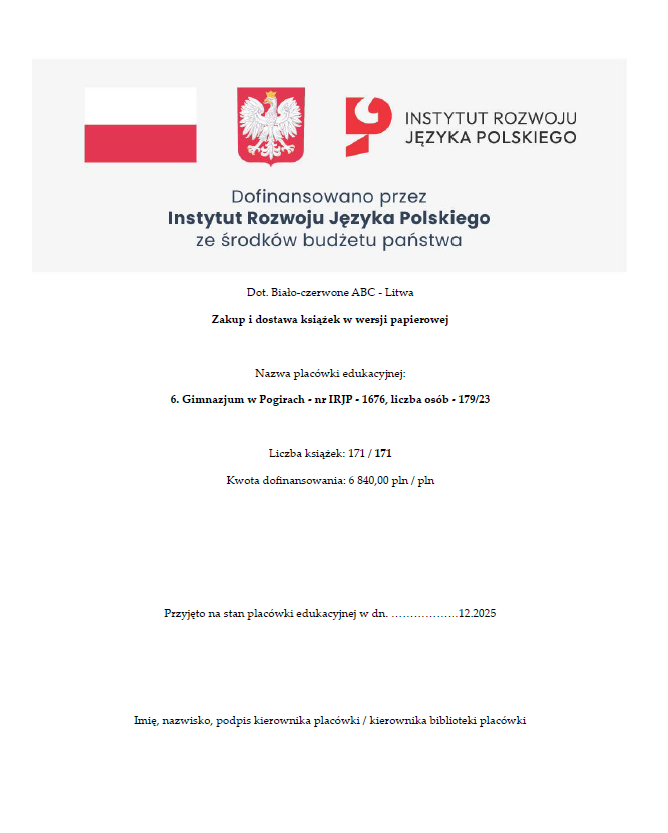 DOFINANSOWANO PRZEZ INSTYTUT ROZWOJU JĘZYKA POLSKIEGO