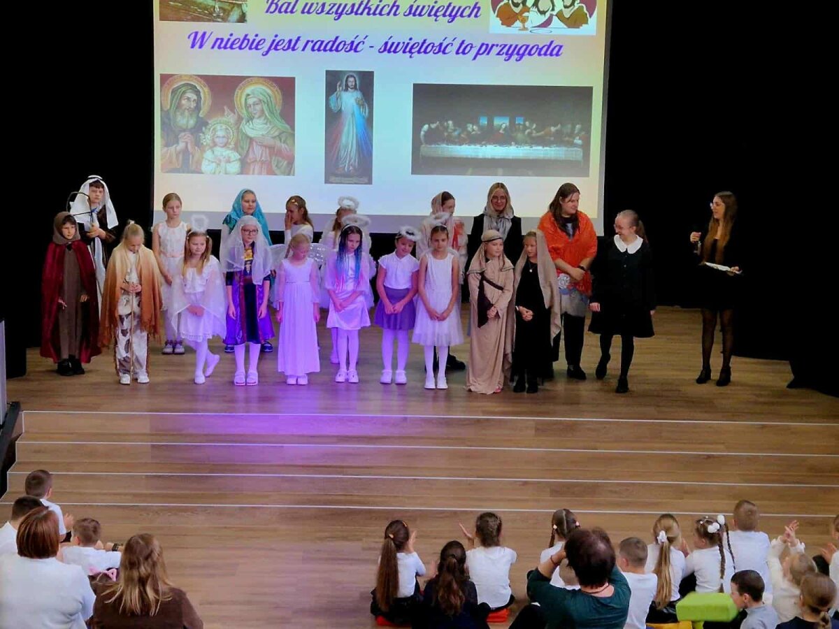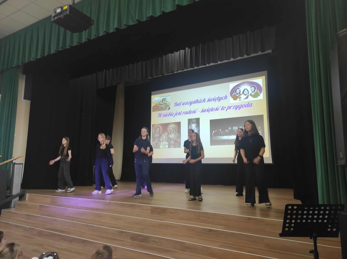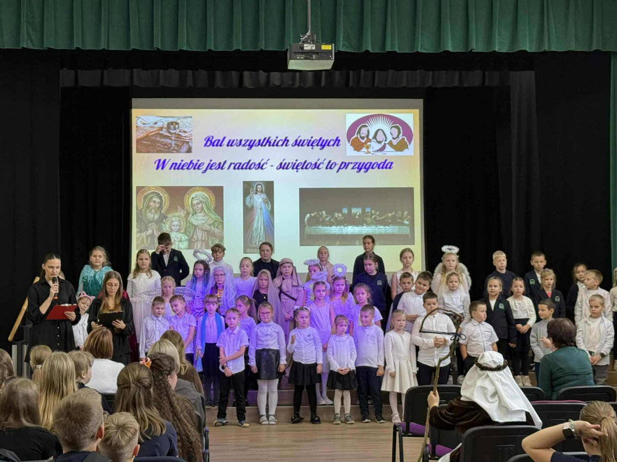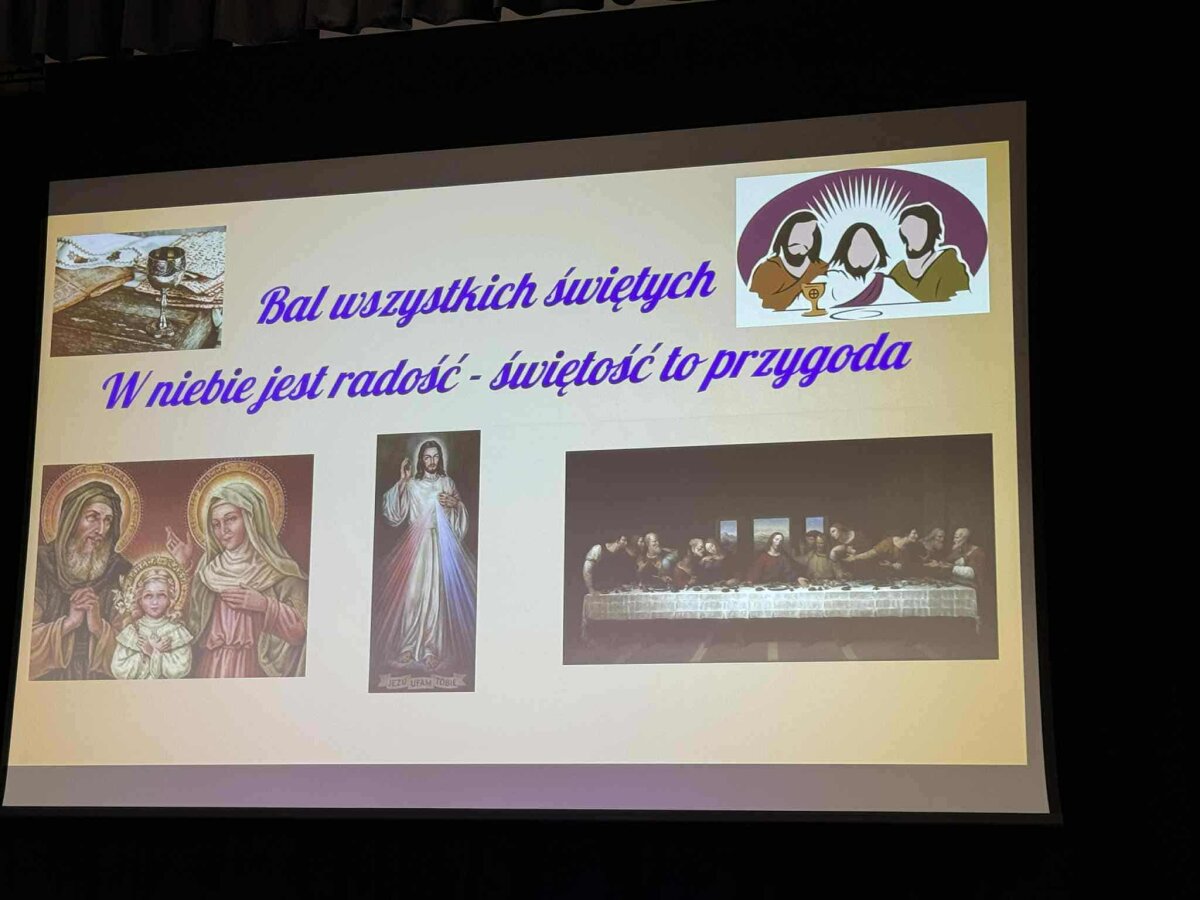 Mokiniai, persirengę pasirinktais šventaisiais, trumpai prisistatė, vėliau vedėjų užduodamos mįslės skatino dalyvius susimąstyti, apie kokius šventuosius kalbama. Šventę paįvairino dainos bei šokiai, o pantomima parodė, kad reikia gyventi su meile ir būti gailestingam, nes kiekvienas iš mūsų gali siekti šventumo. Pokylio metu nebuvo pamiršti ir tie, kurie jau iškeliavo į amžinybę. Dalyviai prisiminė savo mirusius artimuosius ir meldėsi už juos tokiu būdu sujungdami šventinį džiaugsmą su apmąstymais. Šventės pabaigoje buvo paskelbti konkurso rezultatai – apdovanoti geriausiai šventąjį pristatę dalyviai bei tie, kurių kostiumai buvo originaliausi. Tai buvo džiugus ir prasmingas renginys, priminęs mokiniams, kad šventumas nėra kažkas tolima – jis gali pasireikšti atliekant kasdienius darbus su meile - ir kad mirusiųjų atminimas šiuo laikotarpiu krikščionims yra labai svarbus.